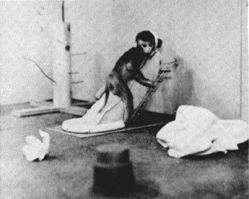 哈洛发明了一个 “强暴架”,以此固定母猴身体,使公猴能够骑到母猴身上。