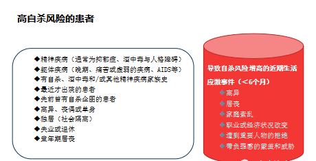 大约1/2的自杀者在死亡前一个月内曾看过医生,仅1/6的医生意识到病人表达自杀想法后很可能付诸行动。所以医生问病史时,需要问得特别仔细,对有抑郁情绪、愤怒、悲观、绝望的人,一定要询问有没有自杀的想法。