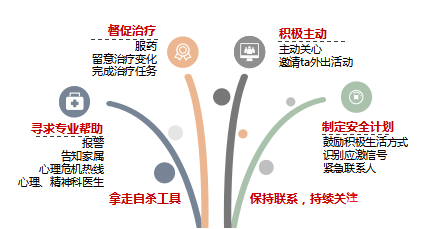 最后提供支持。“嗯,你感到活着很没意思,很痛苦”;“你不是一个人,我会在你身边”;“可能你现在觉得很困难,但这些感觉会过去的”;“可能我没法体会你现在的感受,但我很想帮助你”;“当你想放弃时,告诉自己你可以继续坚持,哪怕一天,一小时”。